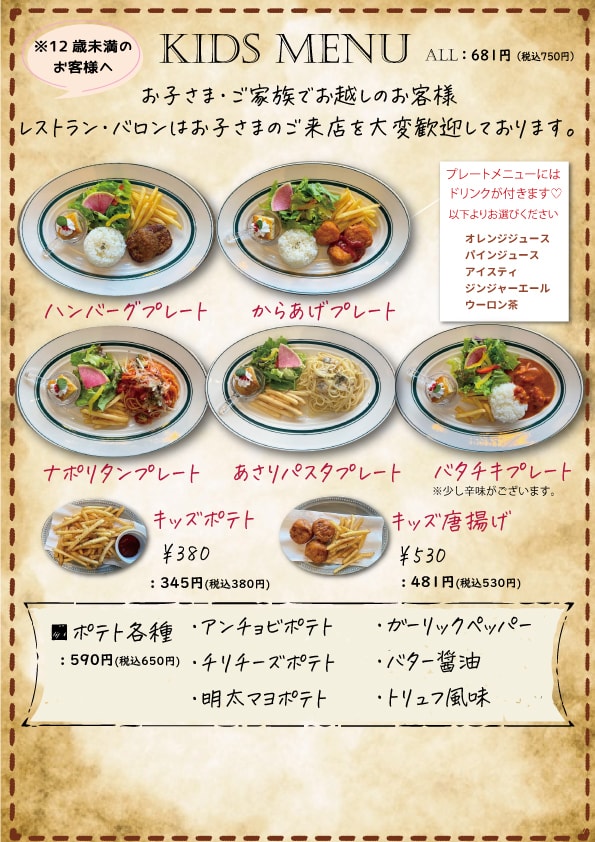 ※同グループみなさまのご注文お願いいたします。(小さなお子様は除く)
