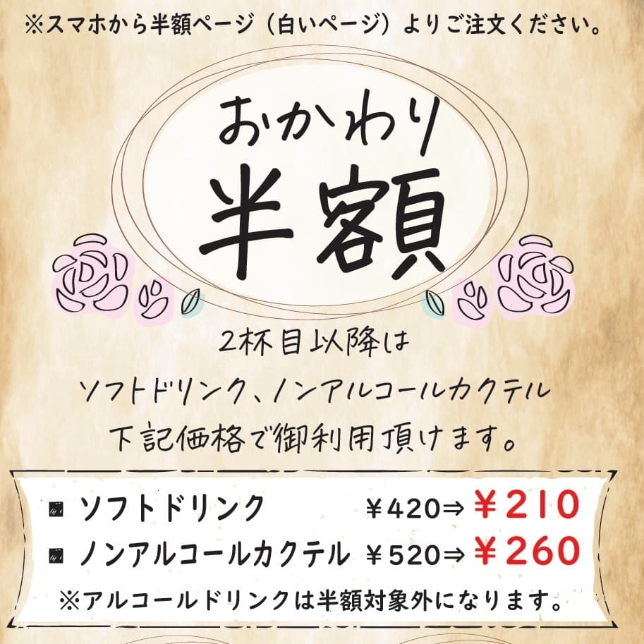 ※飲み放題はグラス交換制になります。
